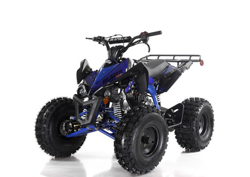 The Apollo Blazer 9 ATV is sized just right for young riders and features electric start and an automatic transmission! The Blazer 9 kids quad houses a tough 125cc 4-stroke engine with overhead cam with a broad powerband for smooth, easy acceleration on any terrain. Front drum and rear disc brakes and big 19 and 18 inch tires provide exceptional stopping power, and the coil-over shock suspension and stiff, all-welded steel frame offer incredible handling in turns and over rough spots. Also features integrated steel front bumper and rear utility rack.